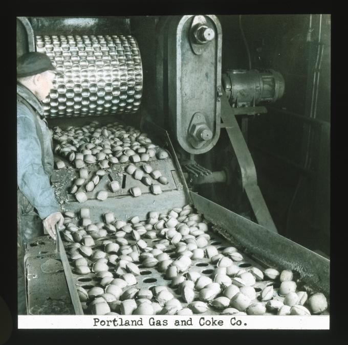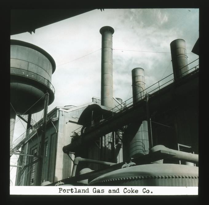 The origins of Oregon’s energy history were humble in comparison to the hydroelectric projects, thermal plants, windmills, and solar farms that were to come. The technology of burning (carbonizing) coal to extract natural gas was first commercialized in Great Britain in the late 1700s. Coal gas was used largely for lighting until 1855, when Robert Bunsen invented a burner—the Bunsen burner—that could be used for cooking and heating. The new technology spread, and in January 1859 the Oregon territorial legislature issued a franchise for a “gas manufactory” to Portlanders Henry Dodge Green and H. C. Leonard. The entrepreneurs built a coal gasification plant on the west bank of the Willamette River in 1859. By the following year, the Portland Gas Light Company, known as GASCO, was providing gas lighting to Portland and its three thousand residents (GASCO was the forerunner of Northwest Natural Gas Company, today named Northwest Natural). The company changed its name in 1892 and again 1910, the second time to the Portland Gas and Coke Company, which by then was producing gas and coke briquettes from heavy oil.