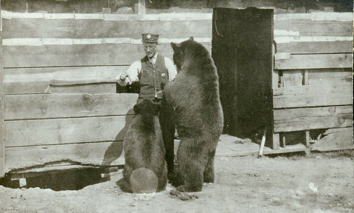 Zookeeper feeding bears at the original zoo in Portland.