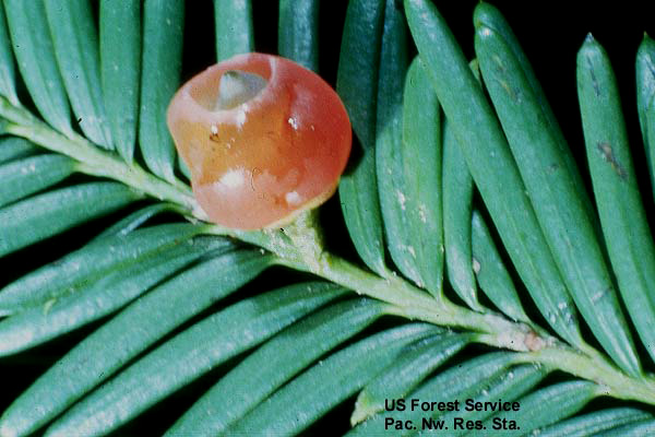 In spite of reports to the contrary, Pacific yew is not poisonous, although its relative, the English yew—known since antiquity as the "tree of death"—is.