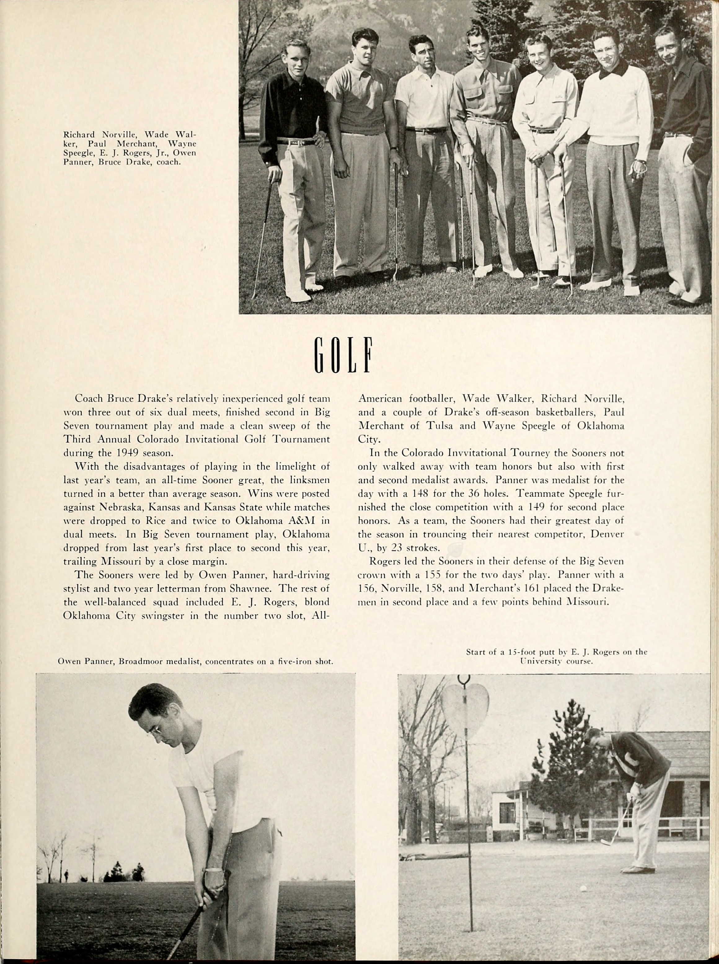 Photo of Owen Panner (bottom left) golfing in the University of Oklahoma yearbook, 1950.