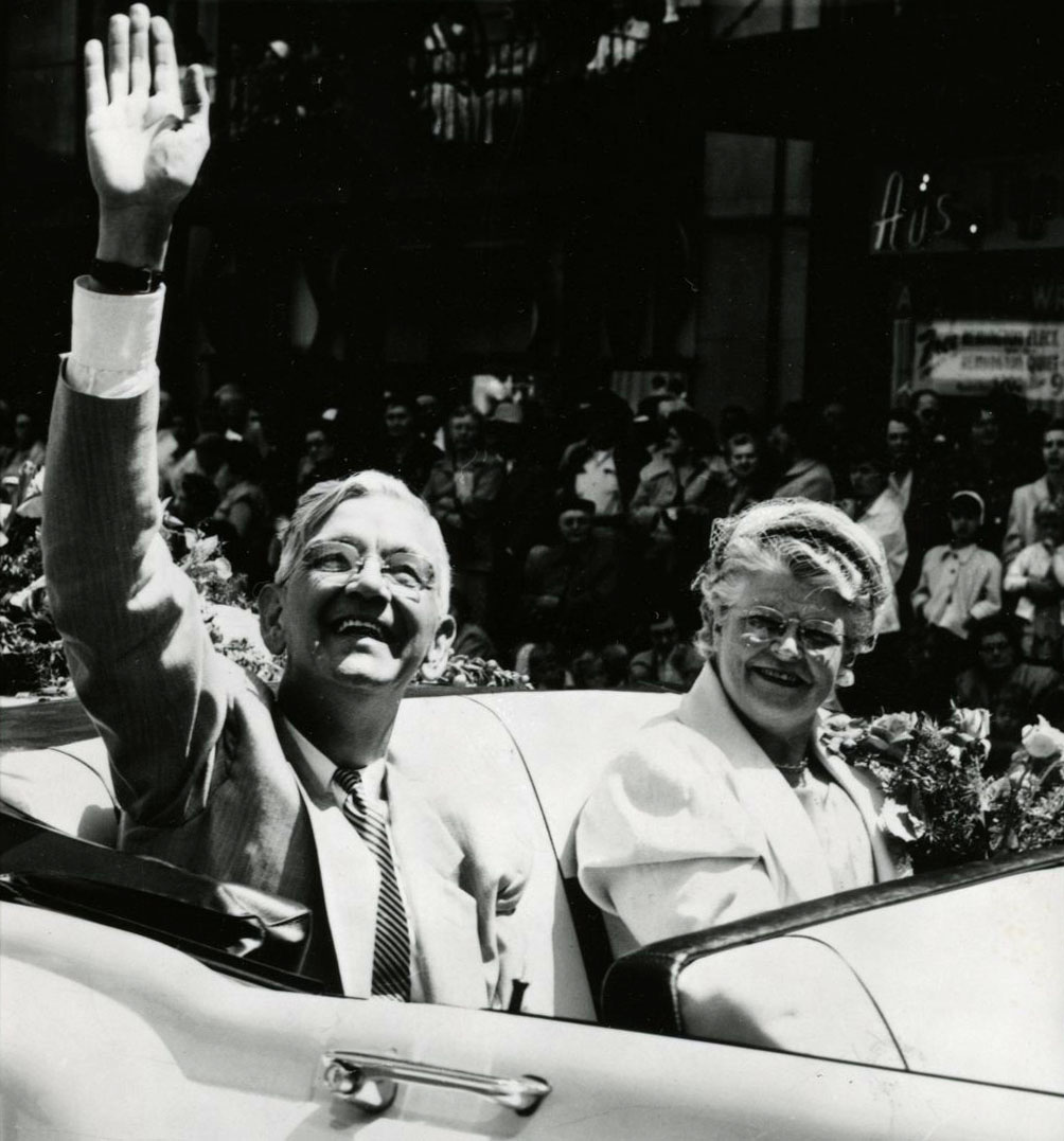 Paul and Georgia Patterson, Portland Rose Parade, 1955.