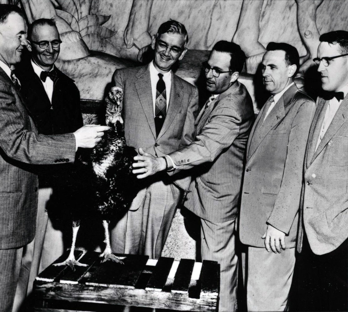 Paul Patterson (center) with members of the Oregon Turkey Improvement Assoc., Nov. 1953.