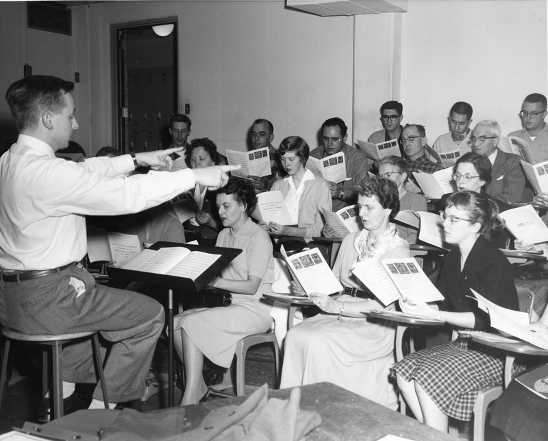 Reinhard Pauly conducting the Lewis and Clark College Community Chorus, 1959.