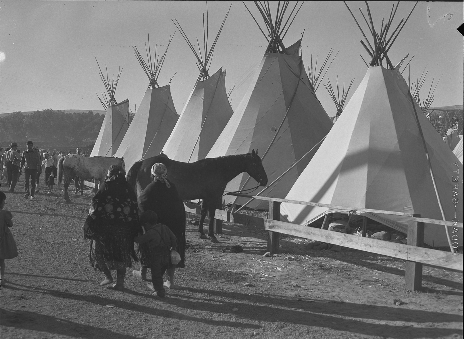 From the beginning, a key feature of the Round-Up, and crucial to its continuing success, was the inclusion of Native Americans. Round-Up promoters invited people from the nearby Umatilla Indian Reservation for the Cayuse, Umatilla, and Walla Walla tribes (now the Confederated Tribes of the Umatilla Indian Reservation) and tribal members from throughout the Northwest to participate in the event. They set up a teepee encampment next to the arena grounds and gave demonstrations of traditional dancing, horsemanship, and skills in beadwork, leatherwork, weaving, and basket making.