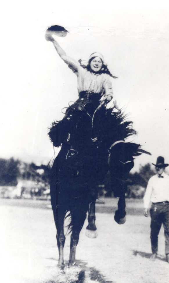 Trick rider Jillie Baldwin, Pendleton Round-Up, 1912.