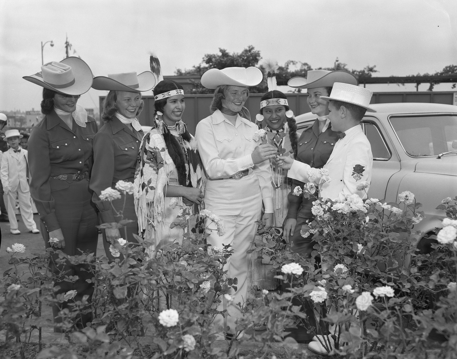 Pendleton Round-Up Court at the Junior Rose Festival Parade, Portland, 1958.