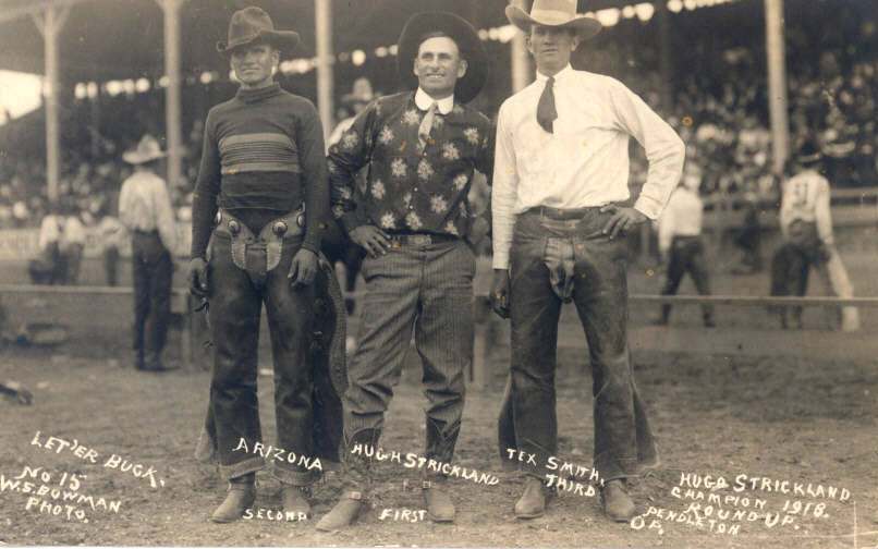 "Arizona," Hugh Strickland, and Tex Smith, Pendleton Round-Up, 1918.