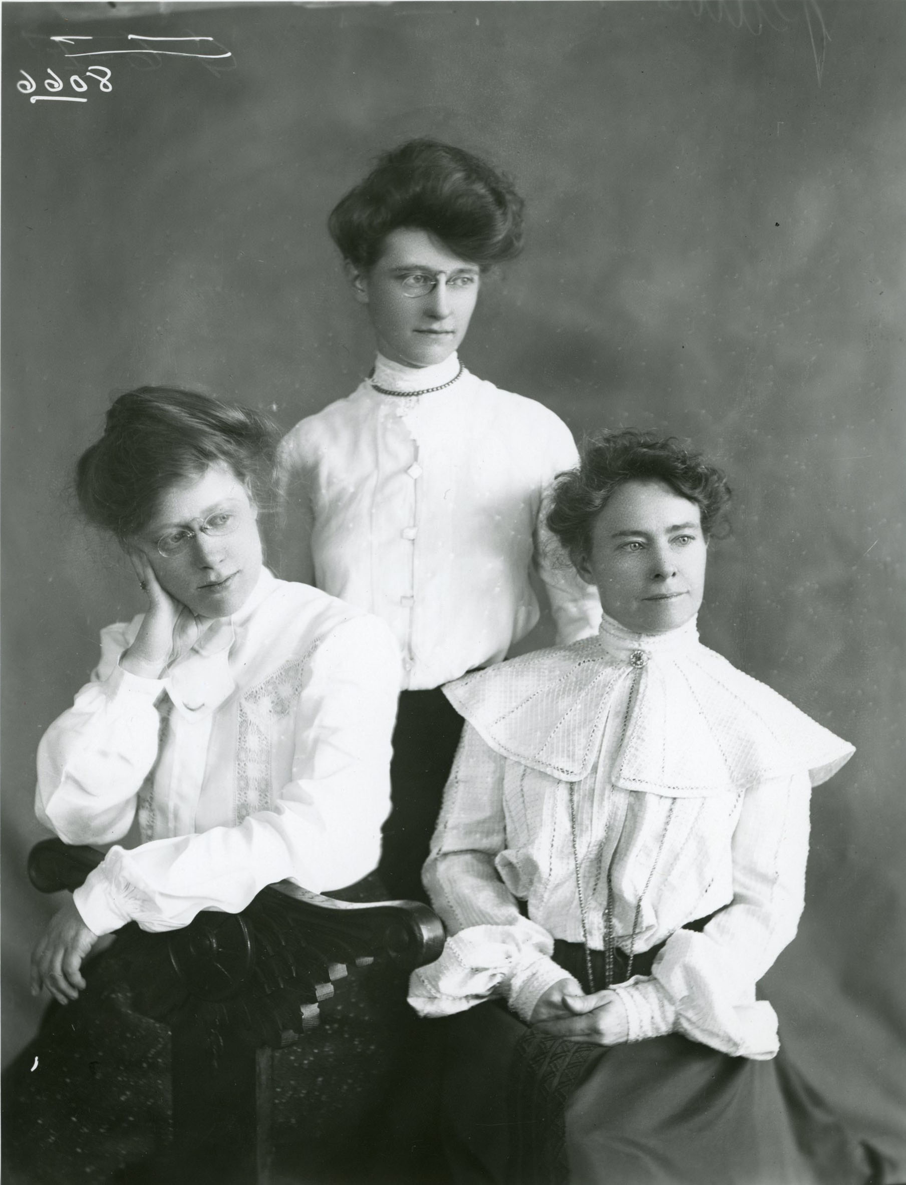 Sisters Louise "Lucy" Pittock Gantenbein (standing), Caroline Pittock Leadbetter (right), and who is likely Kate Pittock on the left.