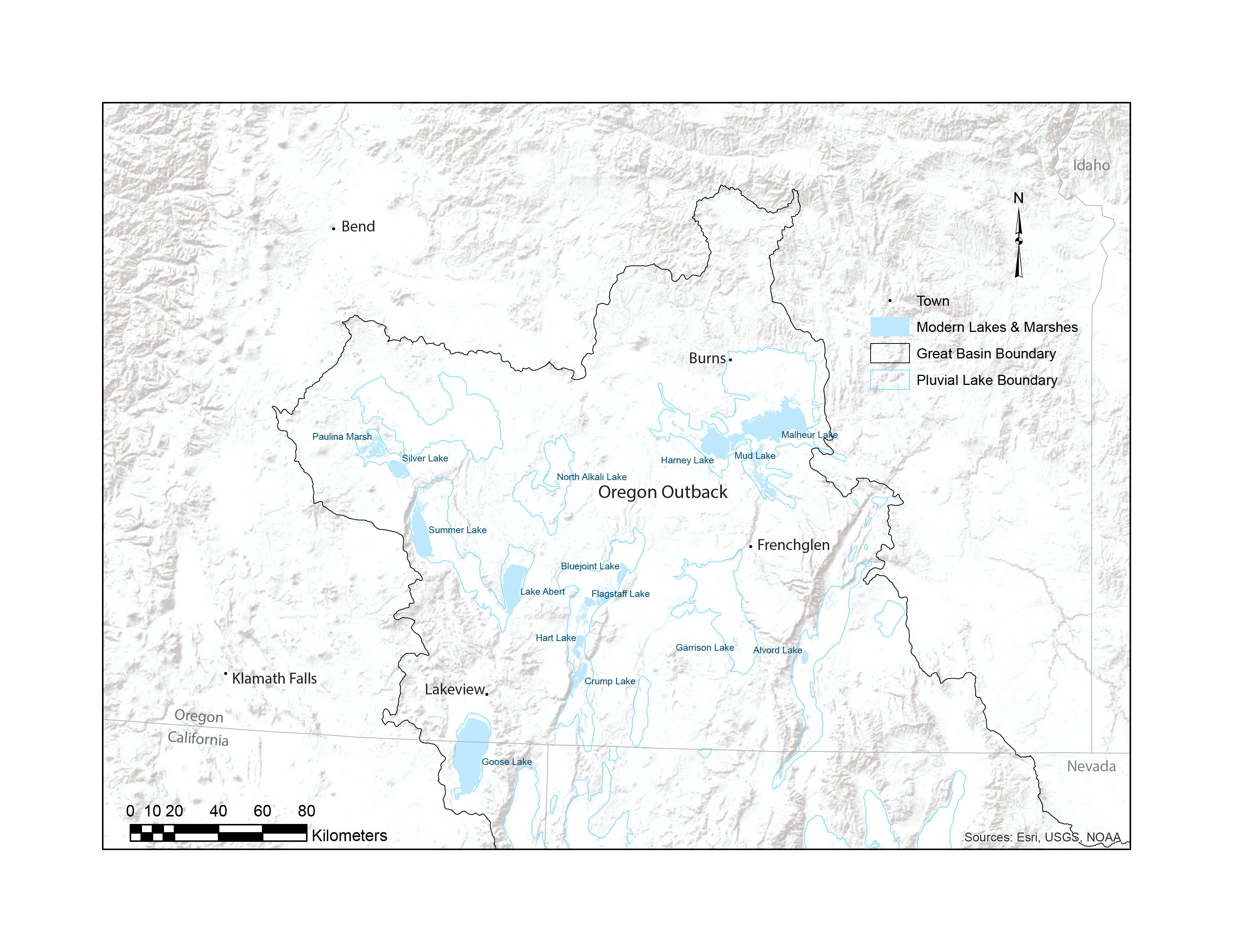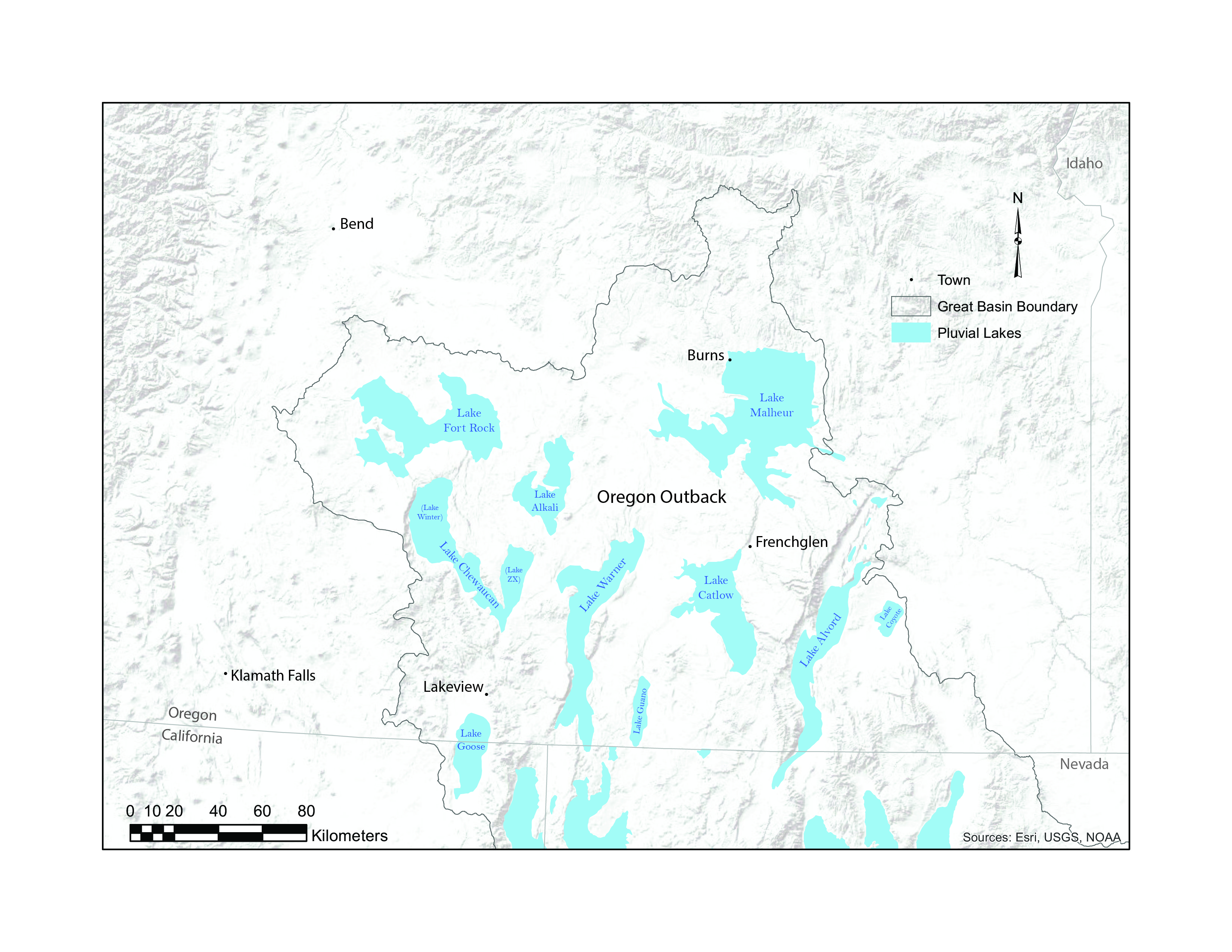 ![]()  Fig.2. Southeastern Oregon’s Late Pleistocene pluvial lakes. Courtesy Teresa Wriston