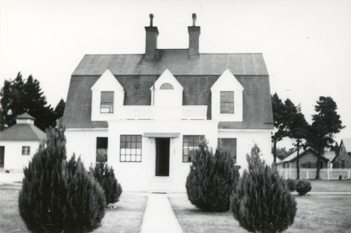Albert Buruley Bibb of the Life-Saving Service designed the original life-saving station house at Point Adams. One of only three designed in the Fort Point-style, it was gambrel-roofed with three dormer windows in the Colonial Revival style. Its design featured a boathouse in a separate building for the first time, rather than as part of crew living quarters. The first keeper was Alexander McLean, who headed the life-saving station until 1891. After a succession of short-term keepers, Oscard Wicklund served as head keeper from 1898 to 1915. The lifesaving station’s boathouse had to be moved in 1913-1914 due to coastal erosion, and a second boathouse was added before 1923, built on piles in the Columbia River.