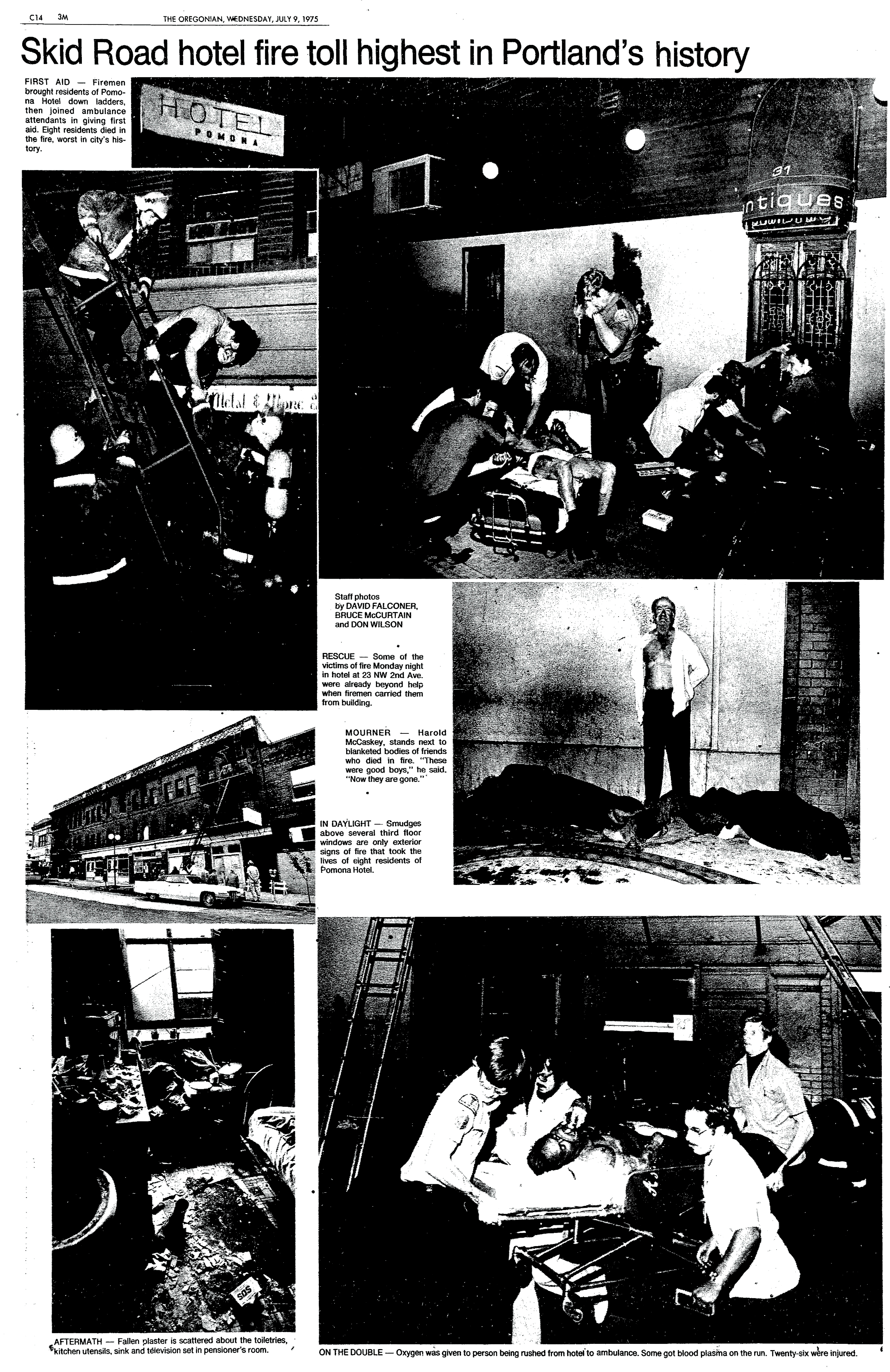 "Skid Road hotel fire toll highest in Portland's history," Oregonian, July 9, 1975.