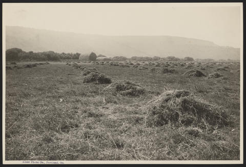 Stacks of crops in field near Prineville, Oregon, c.1915.