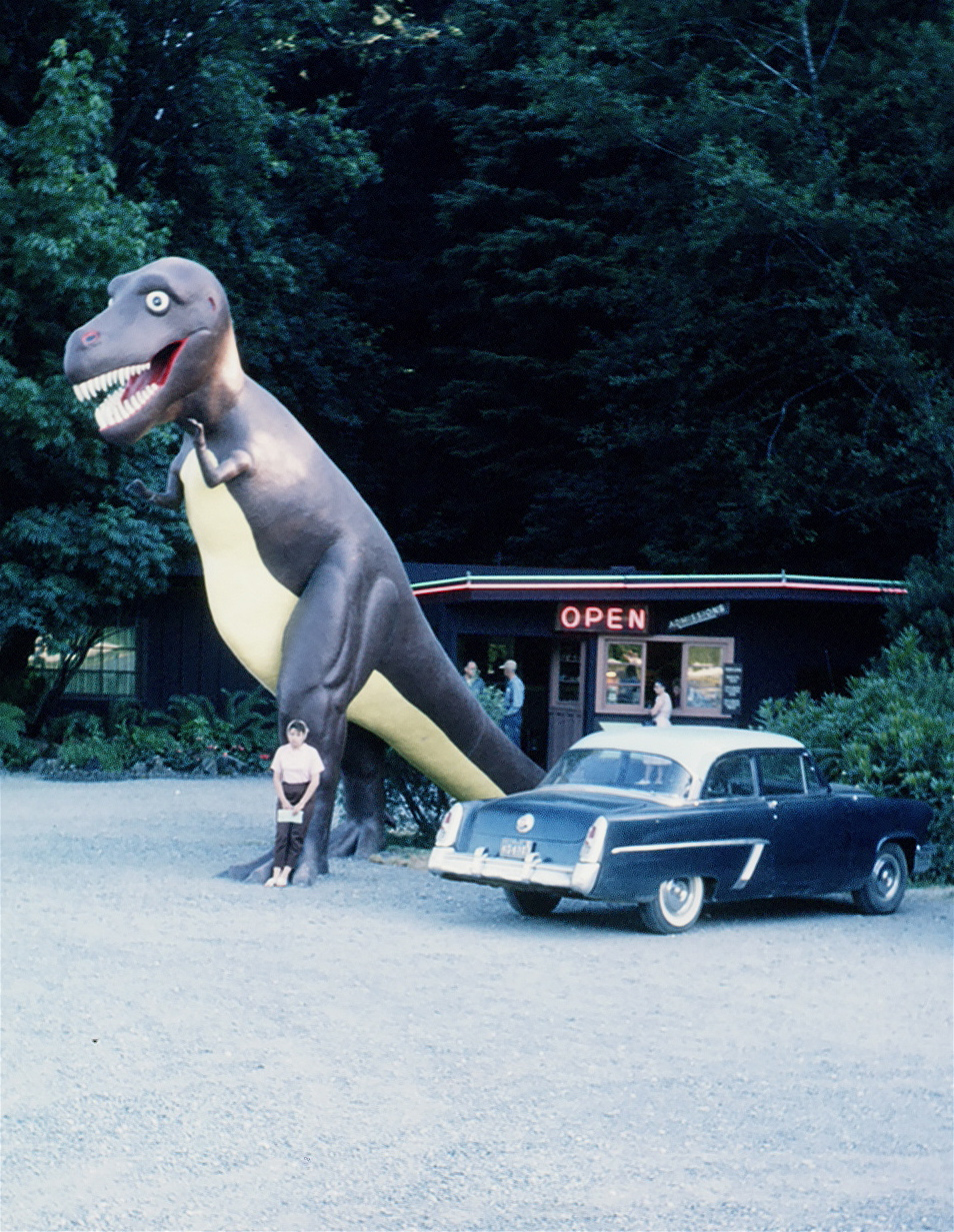 A popular stopping place on the coast in Curry County, Prehistoric Gardens is a remnant of Oregon’s pre-freeway roadscape, where family-owned and operated attractions lured automobile travelers to stop, pay an admission fee, and experience something unusual.