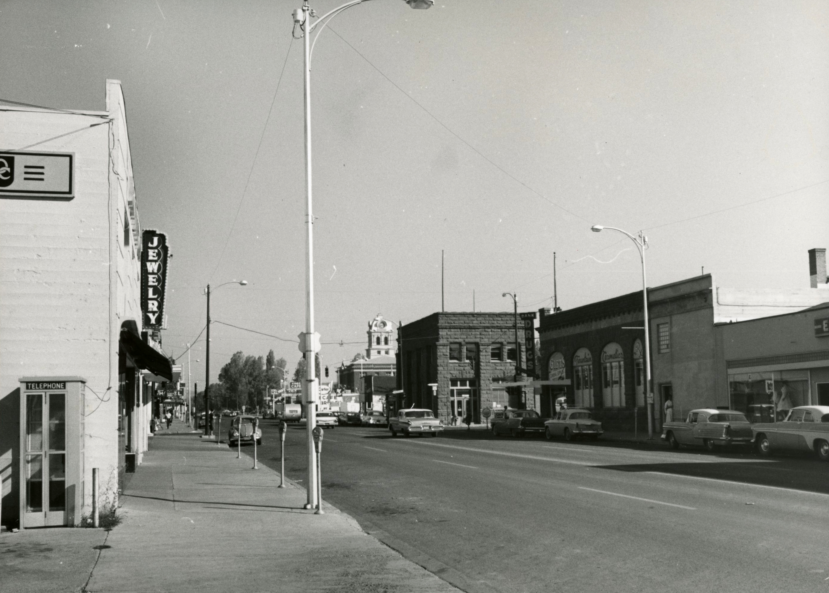 ![]()  Main St., Prineville, 1959. Courtesy Oregon Hist. Soc. Research Lib., ba014932