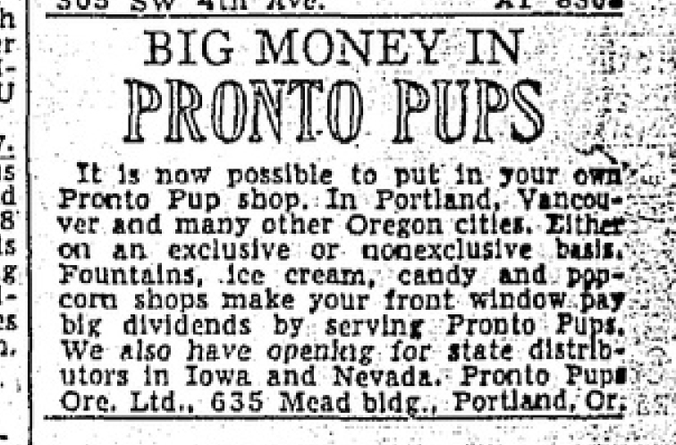 "Big Money in Pronto Pups," Oregonian, February 2, 1949.