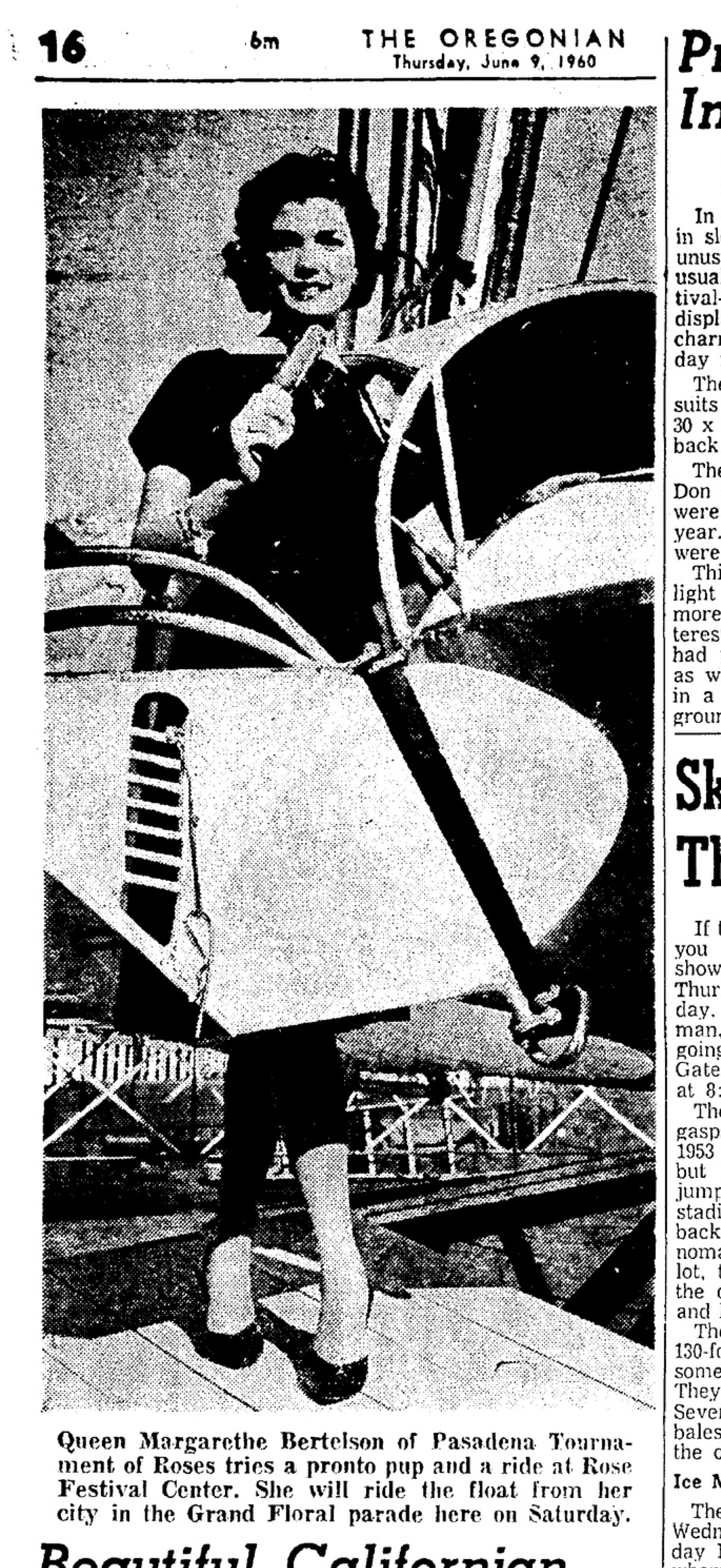 Pronto Pubs at the Pasadena Tournament of Roses, Oregonian, June 9, 1960.