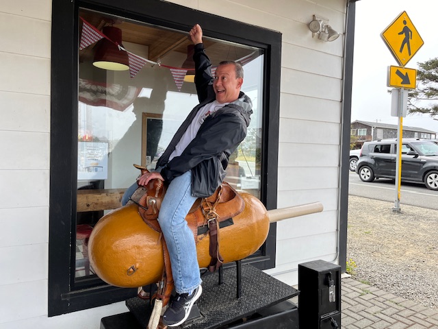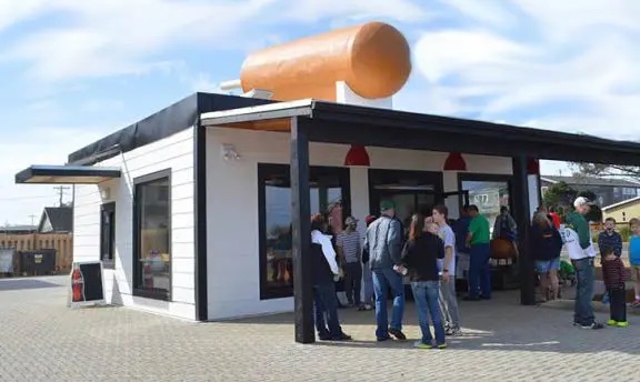 In 2016, the Original Pronto Pup stand opened in Rockaway Beach, in honor of the birthplace of George Boyington’s invention. It features a large fiberglass Pronto Pup on the roof and a mechanical Pronto Pup with a saddle that visitors can ride. In Oregon, Pronto Pups can also be found at original franchise locations in Otis and Seaside. As of 2024, the Sulmonetti family still owned the business, which has company offices in Portland.