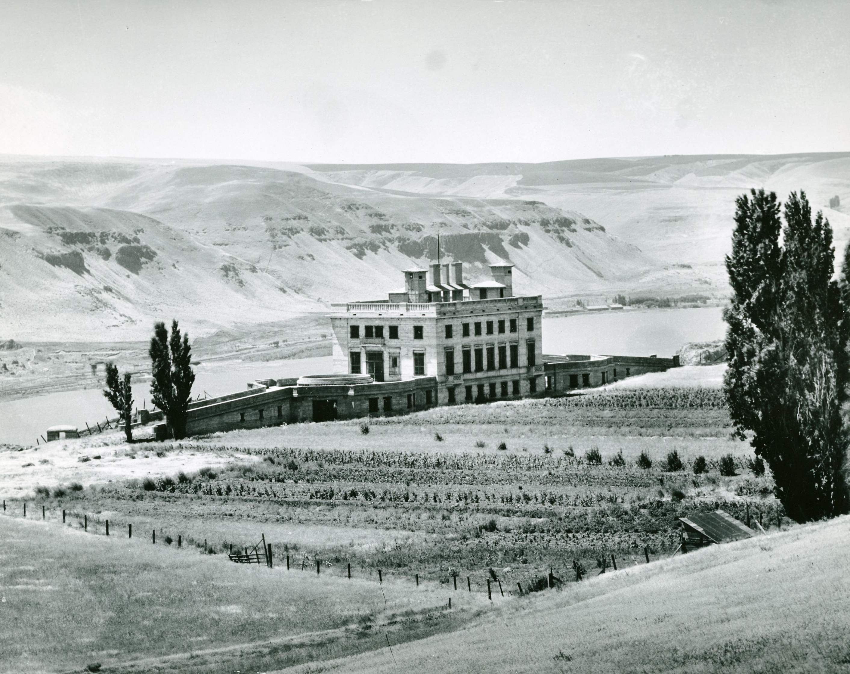 After a New York ticker-tape parade and a White House state dinner, Queen Marie and Hill arrived at Maryhill by private train on November 3. In her diary, Marie called Maryhill “a strange uncouth cement building erected by the just as strange Samuel Hill.” To the crowd of 2,000 that had gathered for the dedication, however, she said: “There is a dream built into this place…Sam Hill is my friend. He is not only a dreamer but he is a worker….So when Samuel Hill asked me to come, I came with love.” The New York Times and other national press covered the event, and the Oregon Daily Journal chartered an airplane to take aerial photos.
