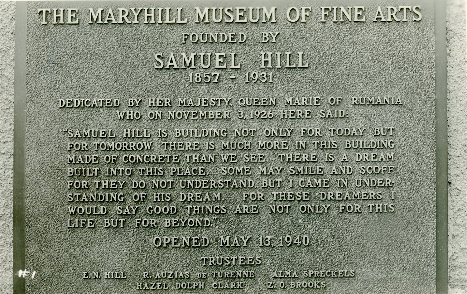 Plaque at the entrance of Maryhill Museum.