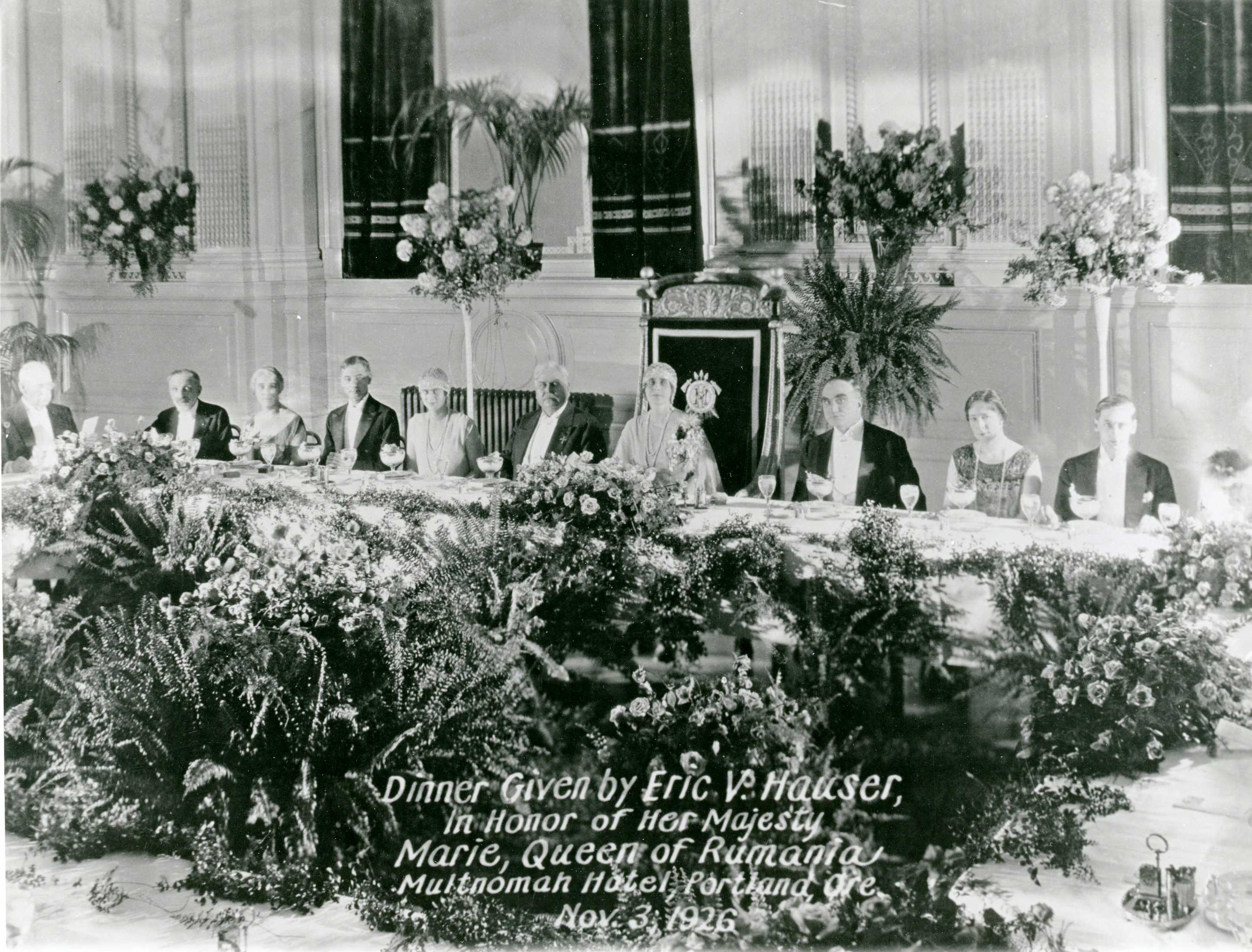 Queen Marie at the Multnomah Hotel, November 1926.