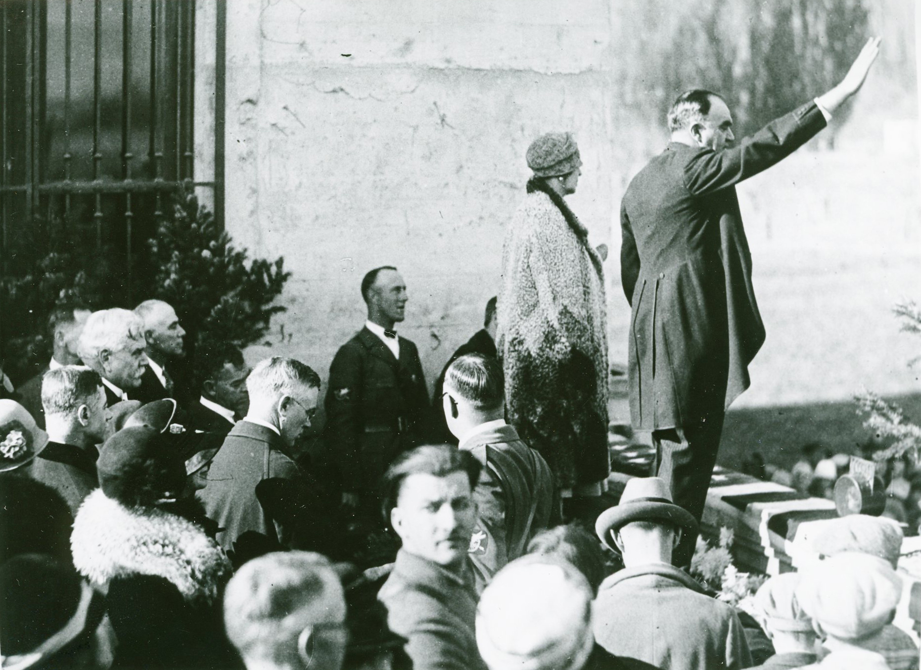Ceremony welcoming Queen Marie of Romania to Portland in 1926, with Portland Mayor George Baker on the podium.