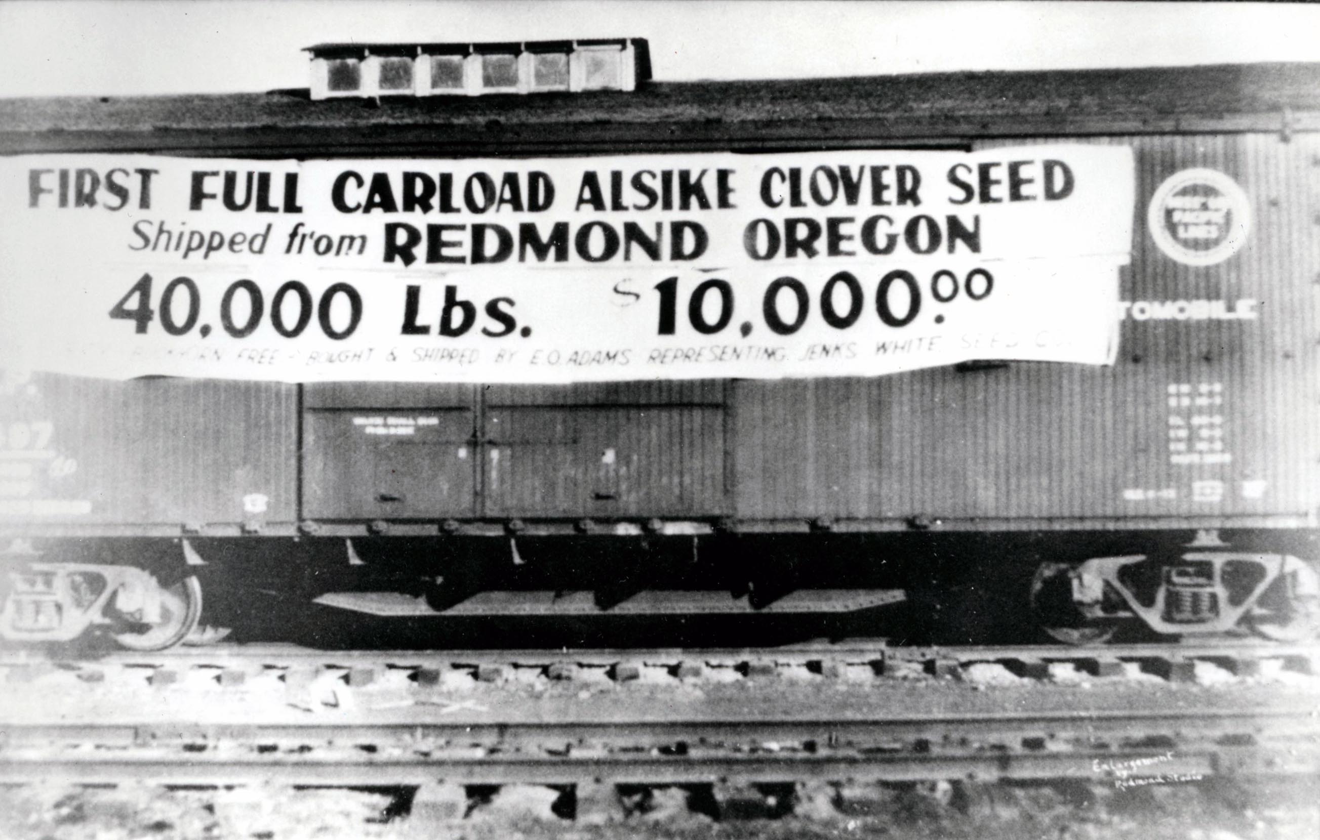 ![]()  Clover seed shipment from Redmond. Oregon Historical Society Research Library, Deschutes County Historical Soc., Orhi74714, photo file 895