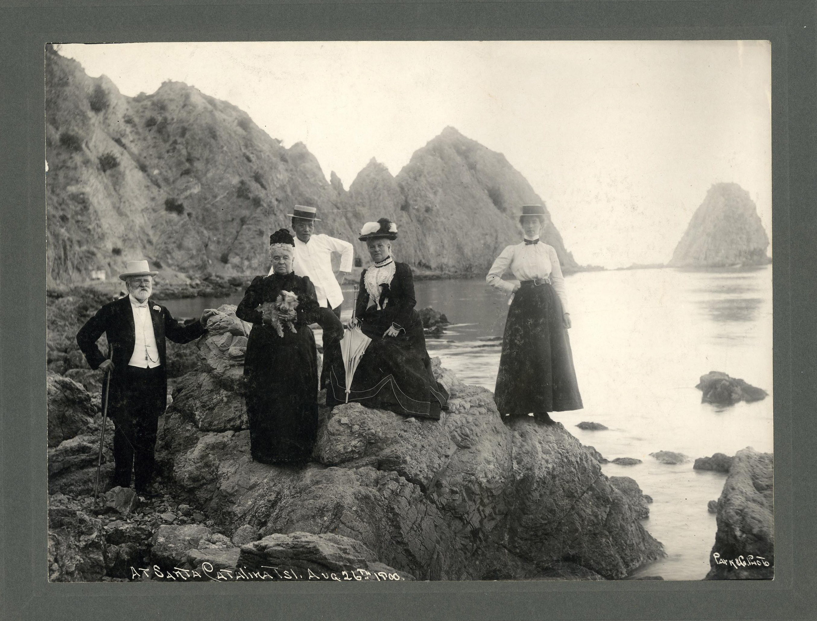 Amanda Reed (holding dog) in California, c. 1900s.