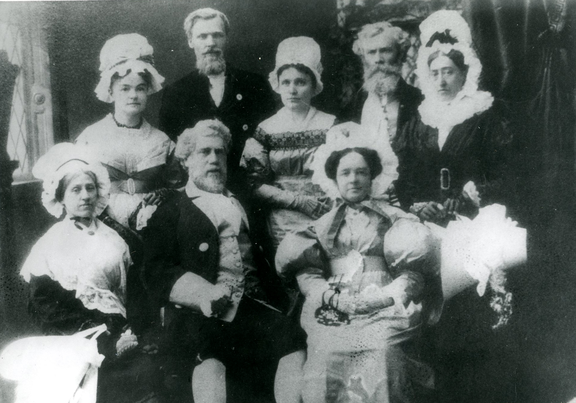Costume party attended by Simeon and Amanda Reed (center seated).