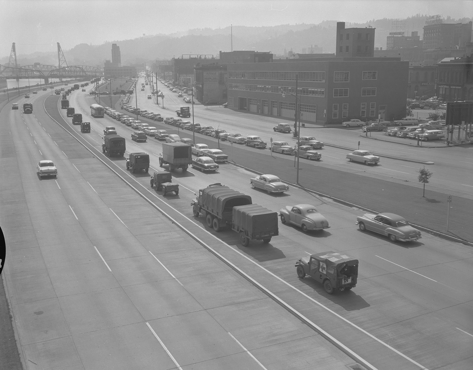 Harbor Drive, along former waterfront business district on west side, Portland, 1955.