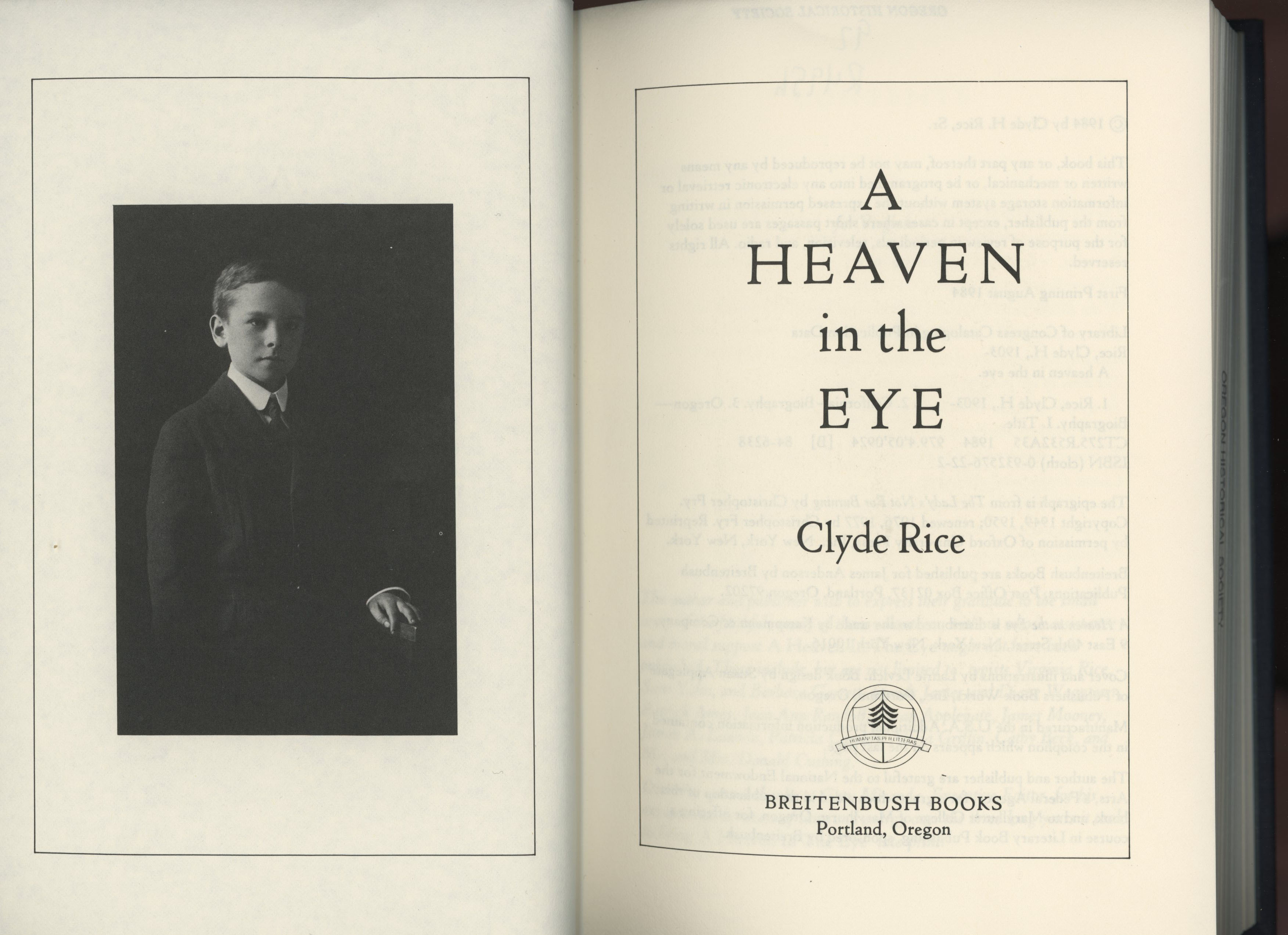 Clyde Rice was eighty-one years old when he published his first book in 1984. Before writing A Heaven in the Eye, he had not thought seriously about writing, but the book won the Western States Book Award for creative nonfiction, judged that year by Robert Penn Warren. USA Today called it one of the ten best books of the year. By 1992, Rice’s reputation had earned him the Stewart H. Holbrook Literary Legacy Award from Literary Arts for “significant contributions that have enriched Oregon’s literary community.”