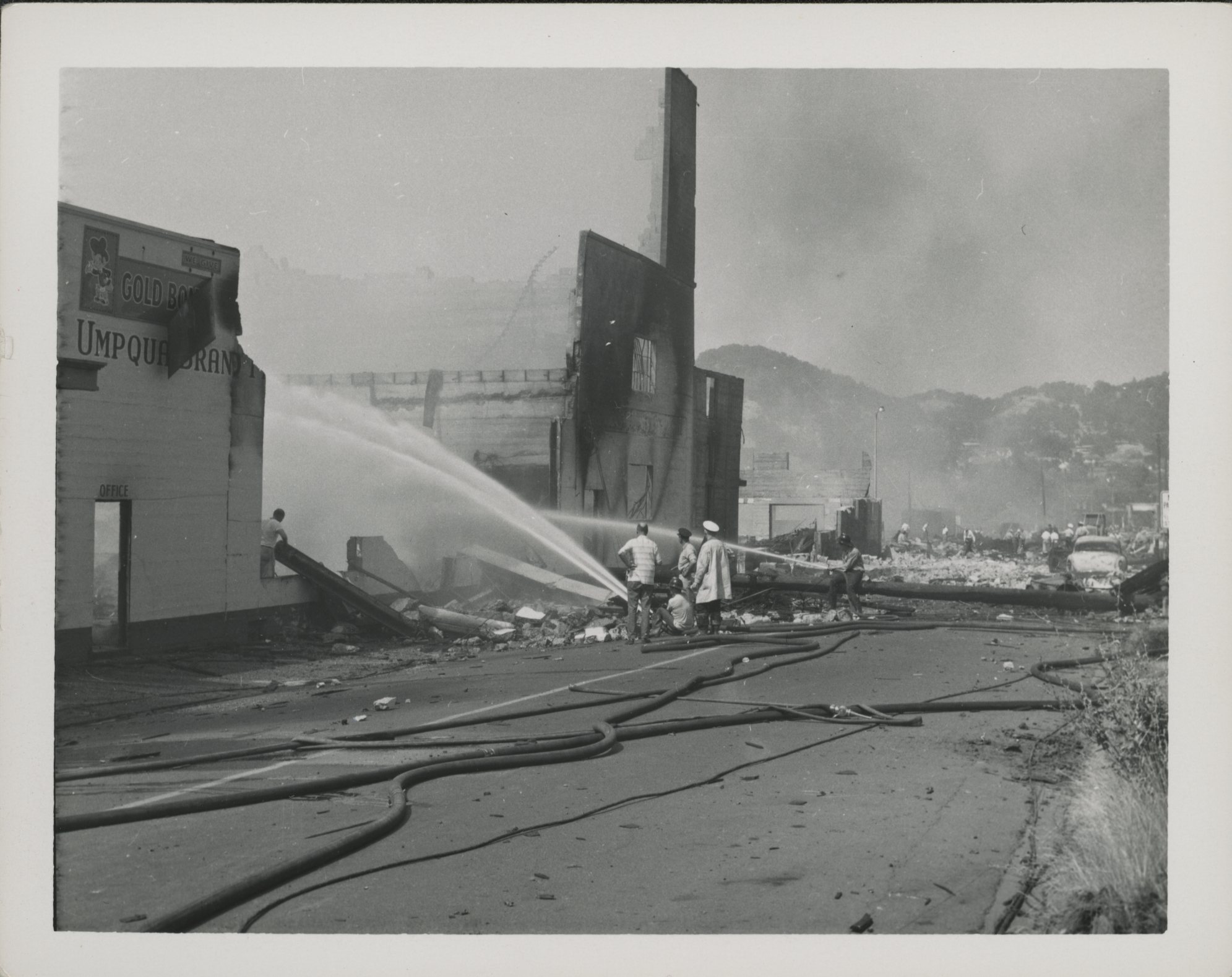 Banel, Feliks. "Blast Devastated Roseburg, Oregon, 58 years ago." My Northwest, August 2, 2017. Includes audio interview with Bill Brubaker, who covered the blast on local radio station KRXL.