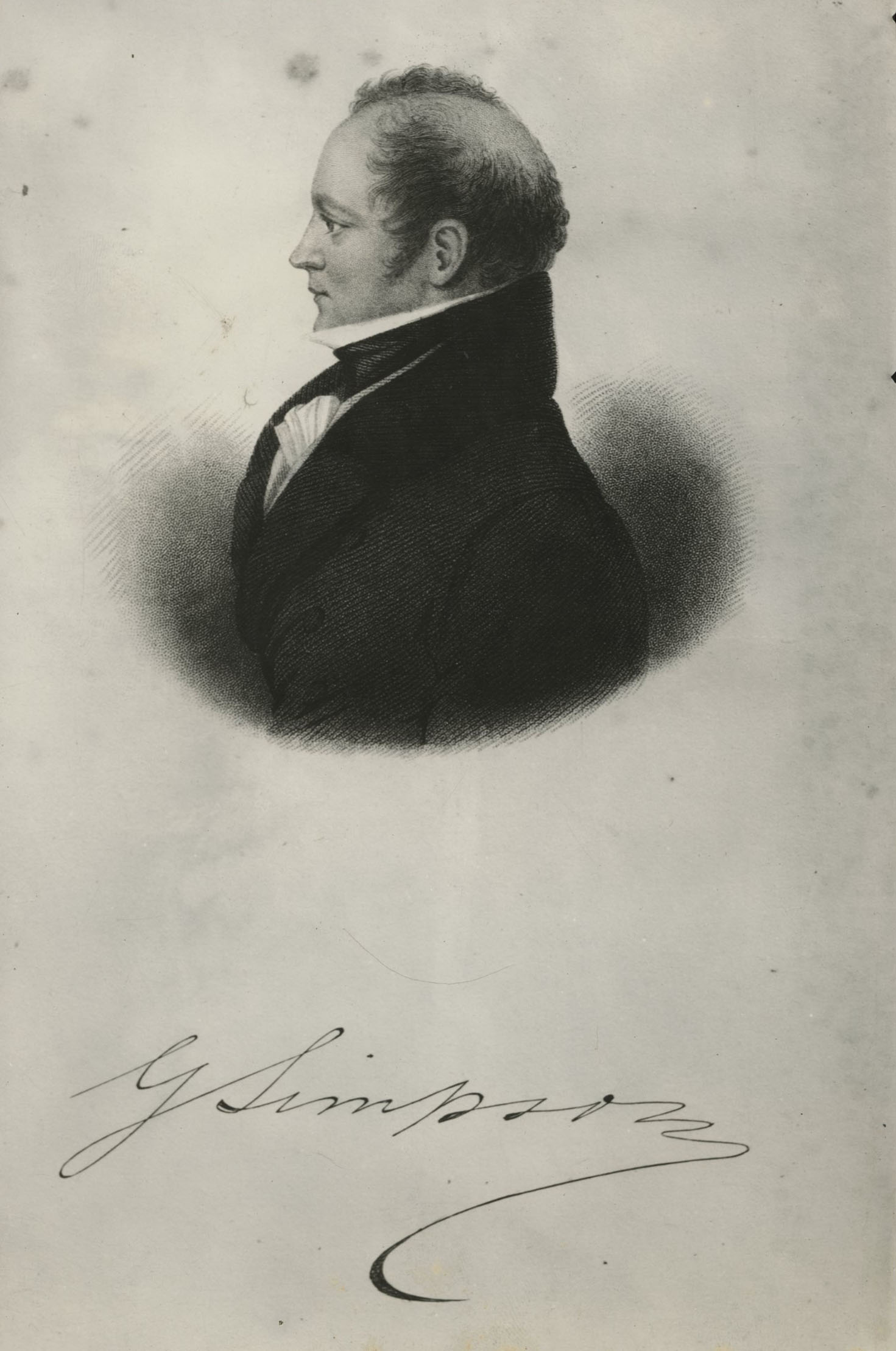 Born in northern Scotland in 1786 or 1787 to unwed parents from different social classes, the diminutive, blue-eyed, redhead honed a knowledge of working-class Gaelic and an "exterior of affability" that would later, in his work with subordinate fur trade employees, smooth the edges of his exacting demeanor. Work with his uncle Geddes Mackenzie Simpson at his company Graham and Simpson (London) connected him with Andrew Colvile, a board member for the Hudson’s Bay Company. In 1820, George Simpson was appointed HBC's acting governor-in-chief in North America.