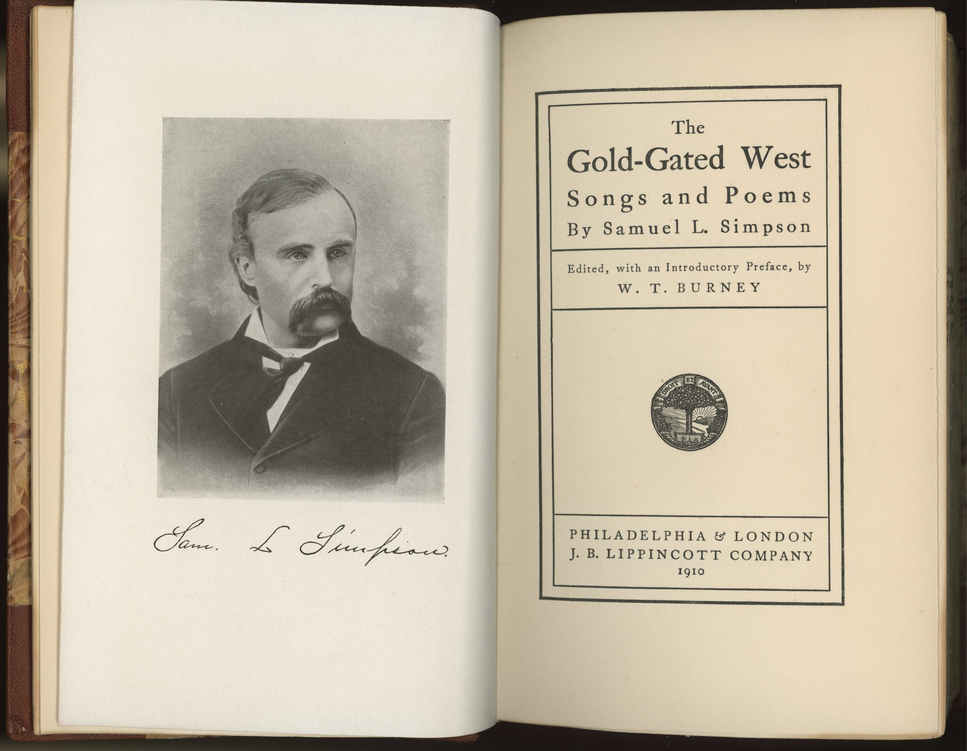 Simpson, S.L. The Gold-Gated West: Songs and Poems. Ed. W.T. Burney. Philadelphia: J.B. Lippincott Co., 1910.