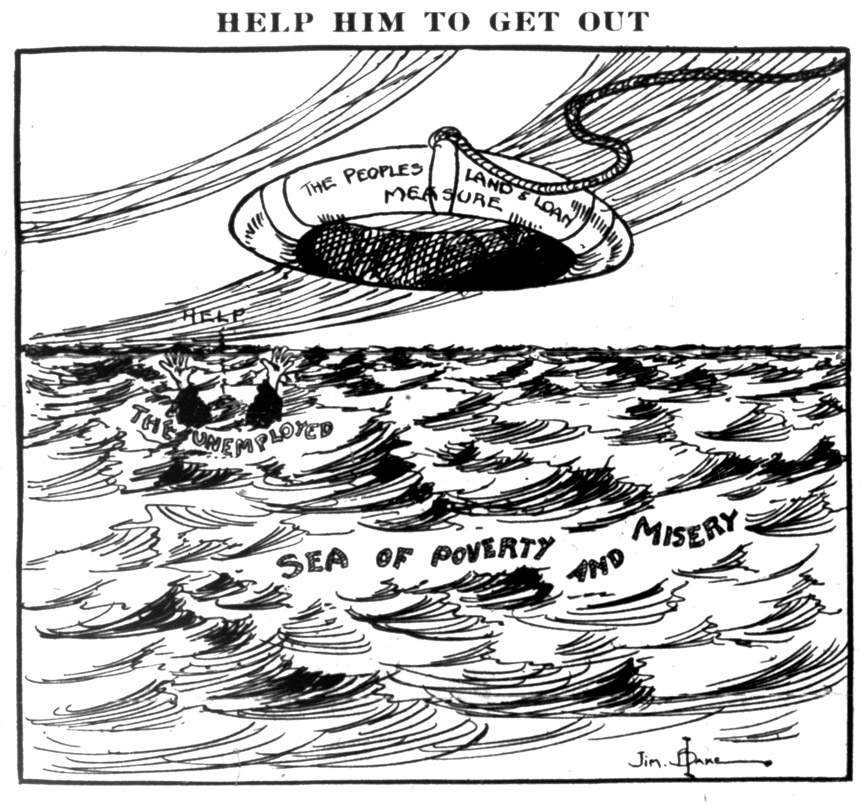 Oregon Labor Press cartoon in favor of the Single Tax: "Help Him to Get Out," 1916.