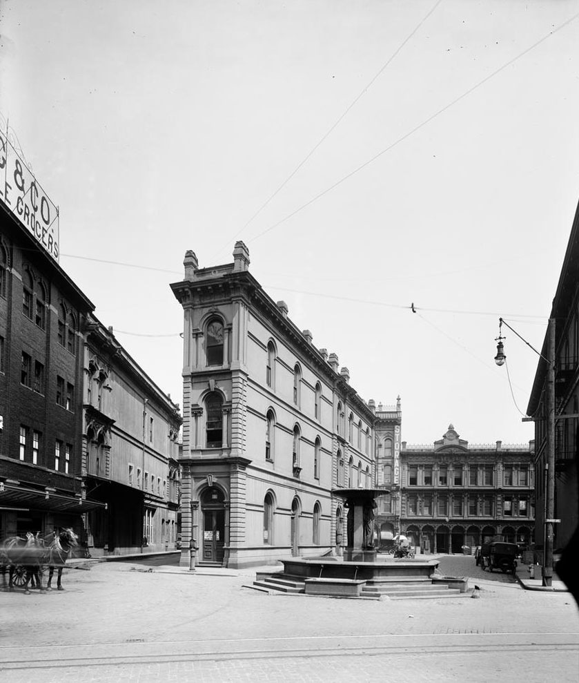 Courtesy Building Oregon, University of Oregon. "Skidmore Fountain (Portland, Oregon)" Oregon Digital -