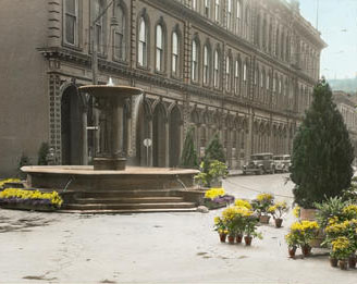Some Portlanders in the 1920s and 1930s proposed to disassemble and move the fountain to the Park Blocks, an idea that the Oregonian ridiculed. In answer to a claim by the New York Tribune that the fountain was too fine for a western city, the Oregonian retorted in 1934 that “If we have not the essential good taste to leave the fountain where the pioneers placed it, the New York newspaper’s envious opinion, uttered so long ago, would seem to be sustained.” The location regained prominence in the later twentieth century when the Portland Saturday Market overflowed onto the Skidmore Fountain Plaza and adjacent Ankeny Park.
