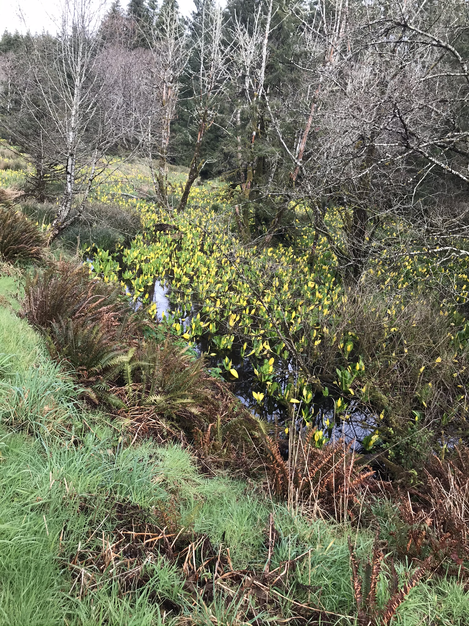 A more immediate impact may the availability of water that sustains skunk cabbage populations. Skunk cabbage requires mucky soils that are wet year-round. Climate change models predict several factors that will severely affect the Pacific Northwest: weather cycles tending toward more episodes of heatwaves, overall increasing average temperatures year-round, prolonged periods of drought, and hotter and more numerous wildfires. Intermittent flooding due to increasing weather extremes may affect the long-term stability and availability of the mucky habitats these plants require. These stresses may affect the growth and reproductive success of skunk cabbage even in areas where the soils remain wet.
