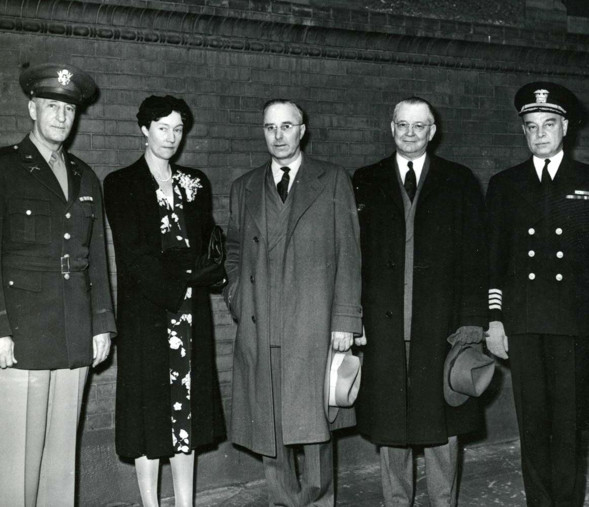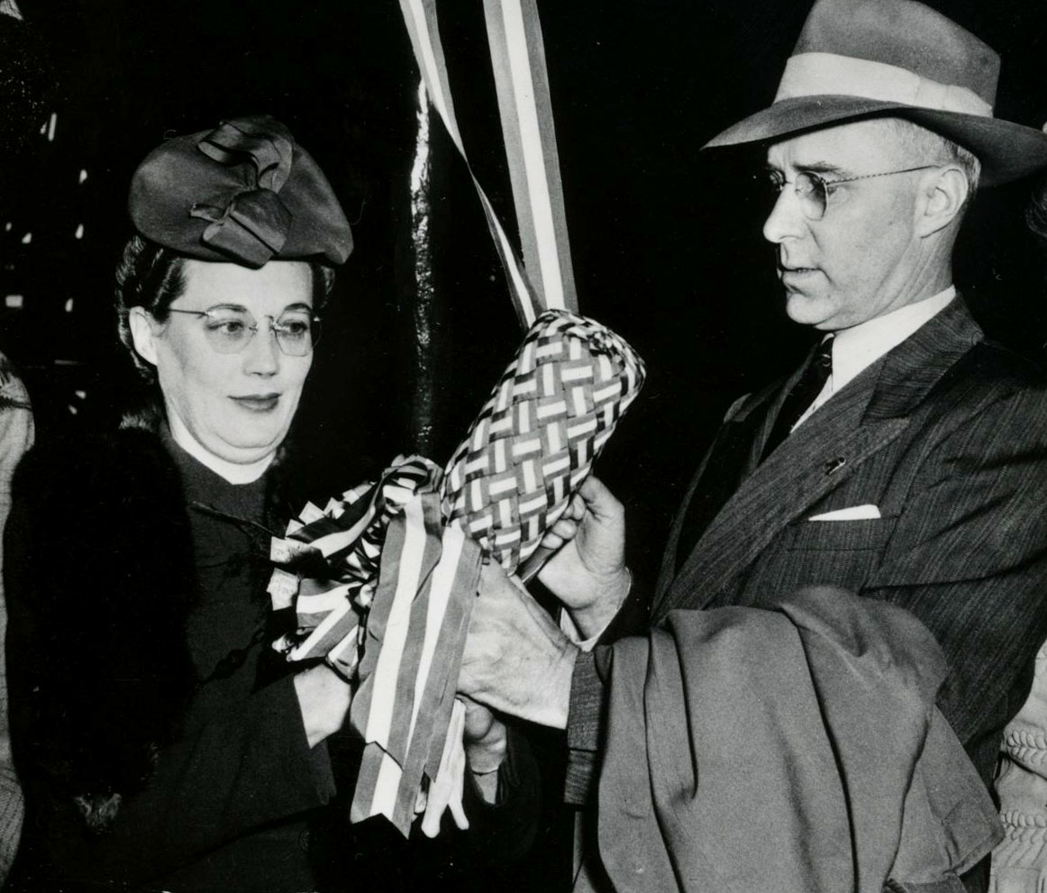 Gov. Snell (center) with Grand Duchess Charlotte (Luxembourg) at Vancouver Barracks, 1943.