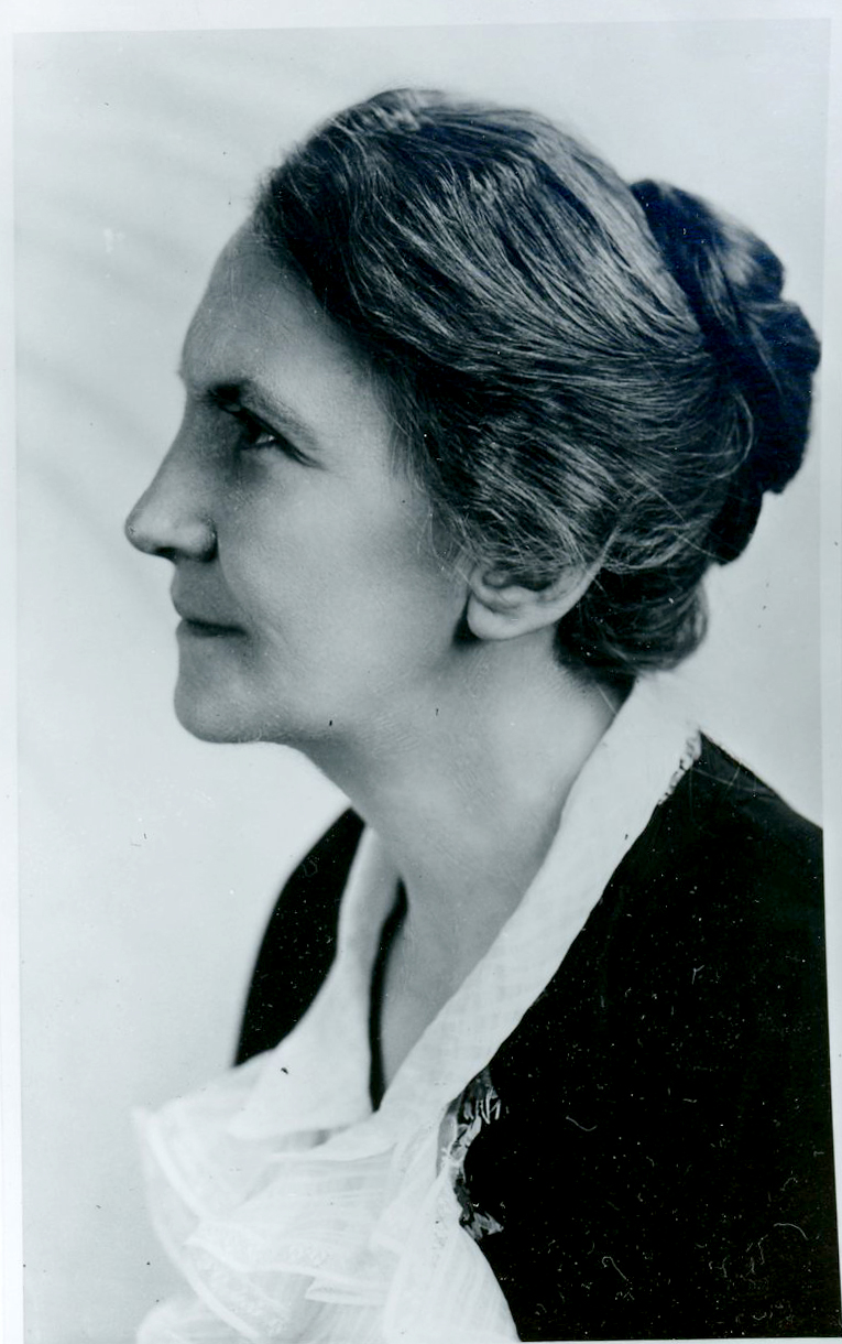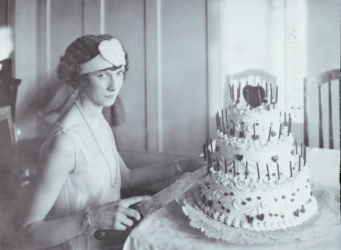 Katherine Kubli cutting the Sons and Daughters of Oregon Pioneers birthday cake in celebration of the anniversary of Oregon statehood in 1923.