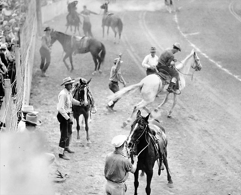 Calf roping at St. Paul Rodeo, July 4, 1940.
