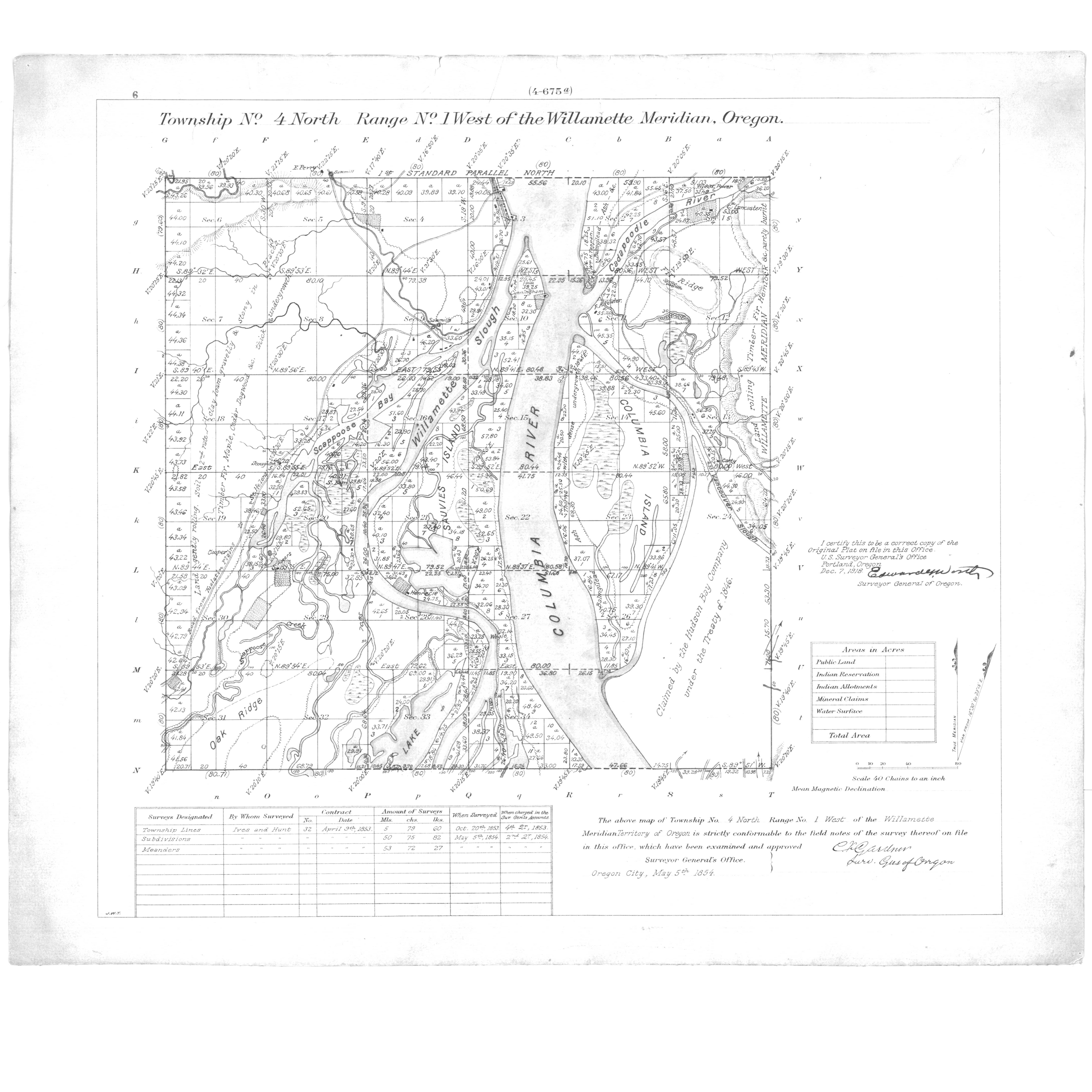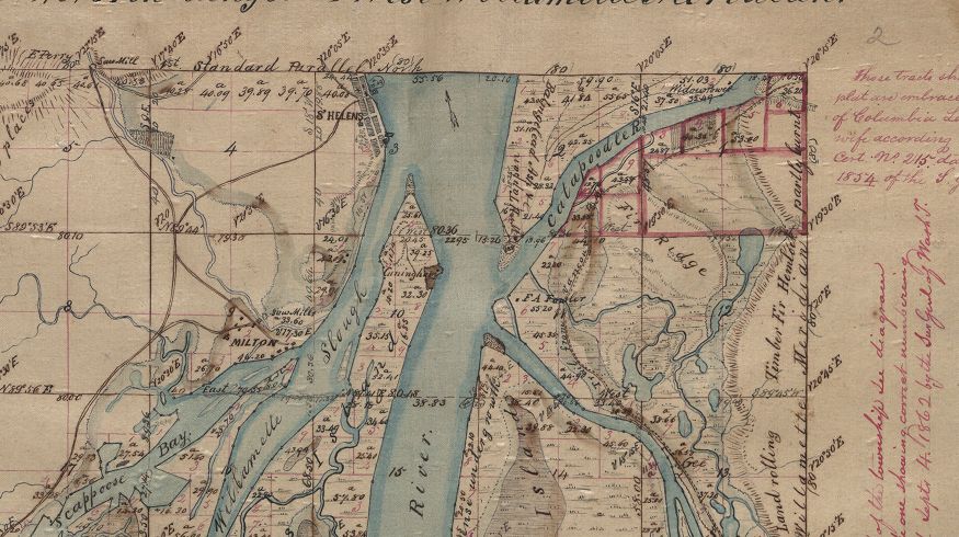 Map of St. Helens (cropped), 1854.