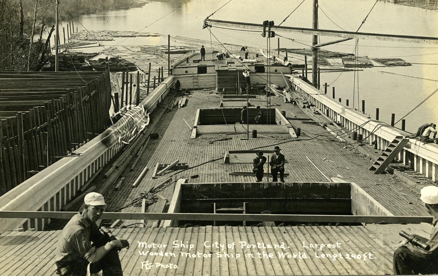 The Ship City of Portland under construction at the St. Helens Shipbuilding Company, 1916.