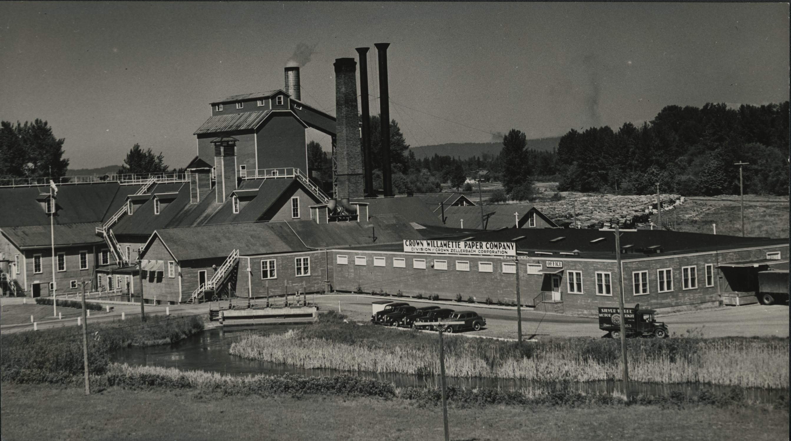 Paper mills on Willamette Falls near Oregon City and West Linn.