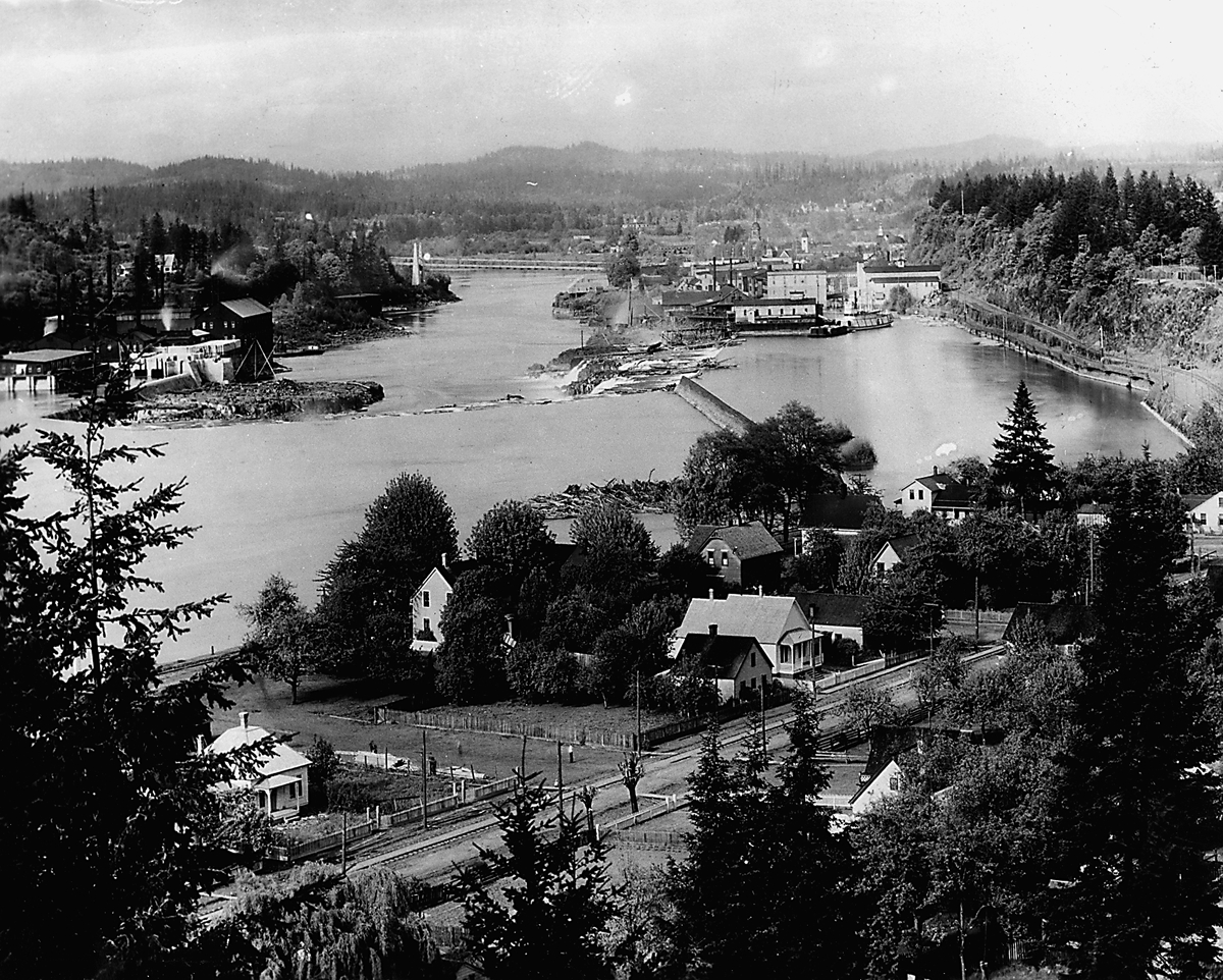 Paper mills on Willamette Falls near Oregon City and West Linn.
