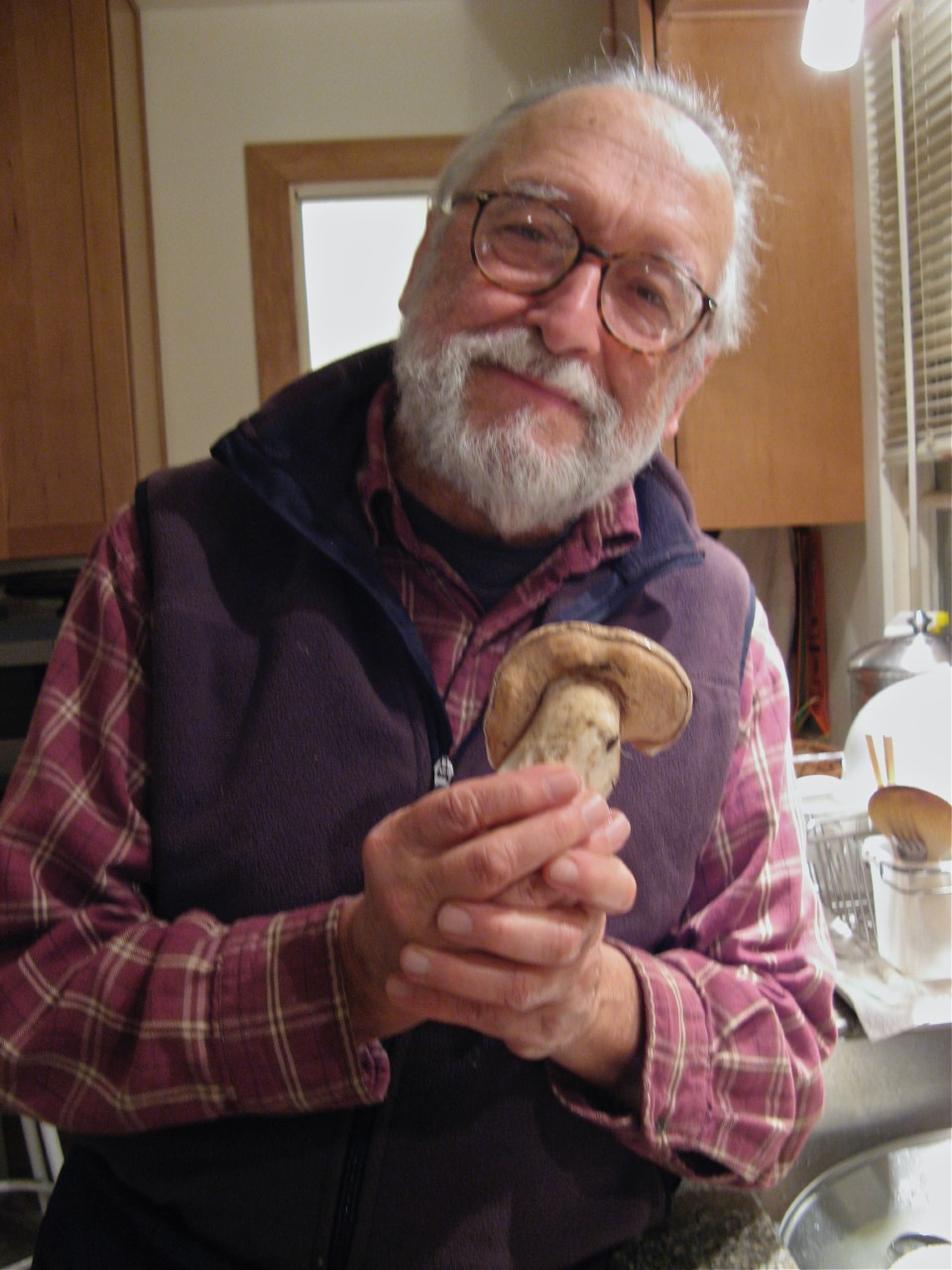 Tomáš Svoboda holding a Boletus mushroom.