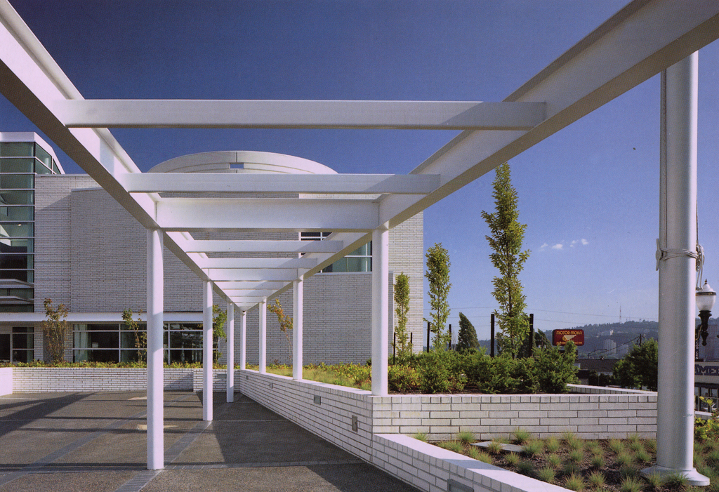 Public projects in Portland designed by TVA include a new home for the weekly retail enclave Saturday Market at Tom McCall Waterfront Park and (with Portland firm ZGF) Director Park in downtown Portland. Each featured a large glass canopy to provide shelter during rainy months.