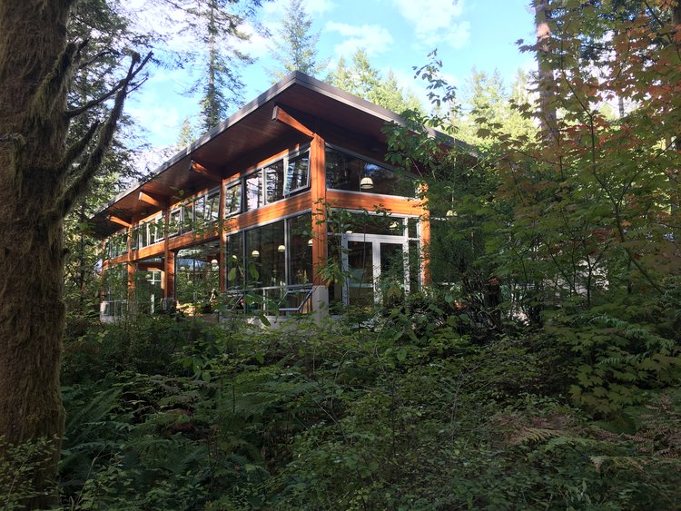 The adjacent Forest Education Pavilion, set in the trees, is a high-windowed heated classroom that overlooks the river and provides a venue for teaching and learning about forests. A 250-foot suspension bridge leads across the Wilson River with access to the Wilson River Trail. A full-size lookout tower with a replica lookout cabin allows a view into the forest canopy. Educational programs are available for students of all ages.