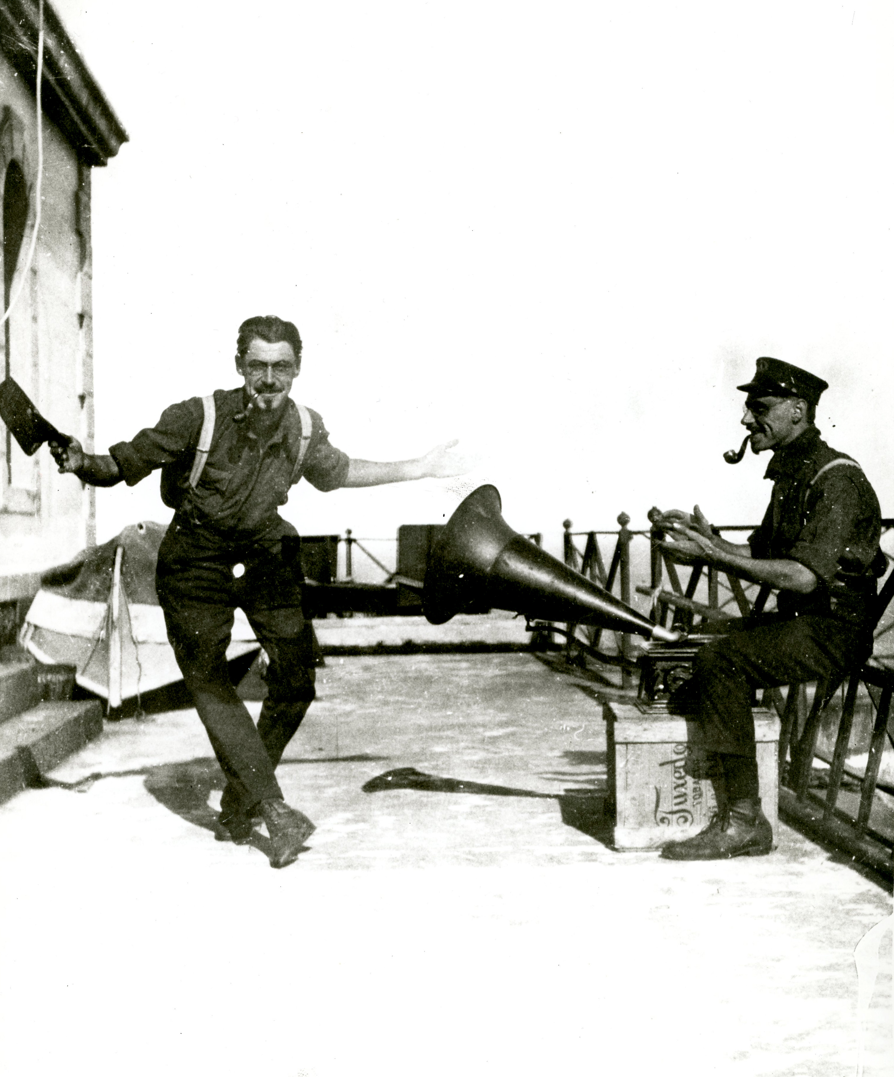 Keeper W. T. Lawrence (right) claps for a dancing colleague, c. 1920s.