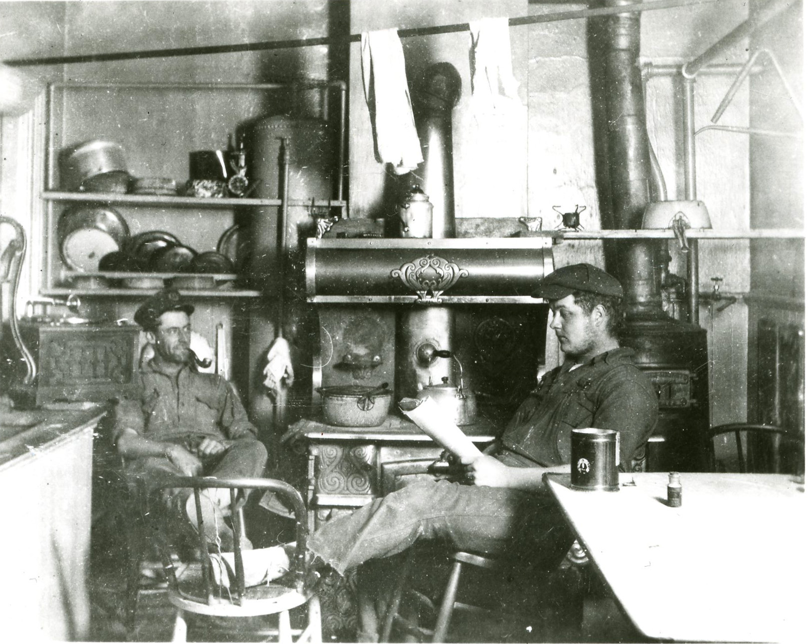 Keeper W. T. Lawrence (left) with unknown keeper, Tillamook Rock Lighthouse, c. 1920s.