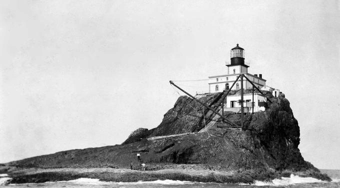 Courtesy Building Oregon, University of Oregon. "Tillamook Rock Lighthouse (Seaside, Oregon)" Oregon Digital -